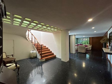 - Departamento de huéspedes que consta de: sala, comedor, ½ baño, cocina integral, área de lavado, 4 recamaras con baño y vestidor, sala de TV, clóset de blancos y cuarto de servicio, elevador